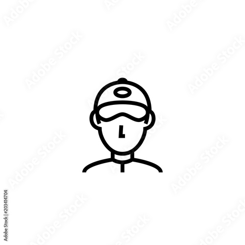 Obraz premium shipping courier man icon. delivery worker wearing hat symbol. simple clean thin outline style design.