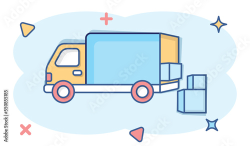 Fototapeta premium Shipping fast icon in comic style. Delivery truck cartoon vector illustration...