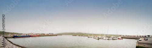 Fototapeta premium Ships in the Dingle harbour on foggy day.