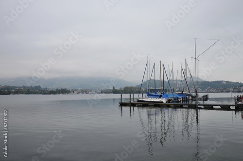 Fototapeta premium Ships on harbour in Luzern lake