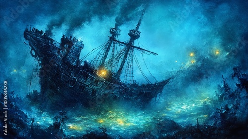 © Phatharaporn, Fototapeta premium Shipwreck at Sea.