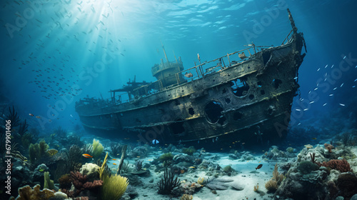 © Framefolio, Fototapeta premium Shipwreck at the bottom of the sea
