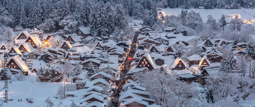 © vichie81, Obraz premium Shirakawago light-up Panorama
