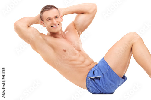 © Ljupco Smokovski, Obraz premium Shirtless athlete exercising abs