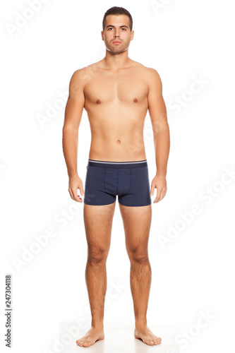 © vladimirfloyd, Fototapeta premium Shirtless handsome man in panties on white background