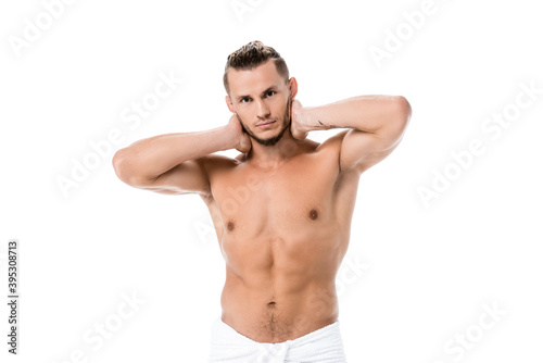 © LIGHTFIELD STUDIOS, Fototapeta premium shirtless man in towel posing isolated on white