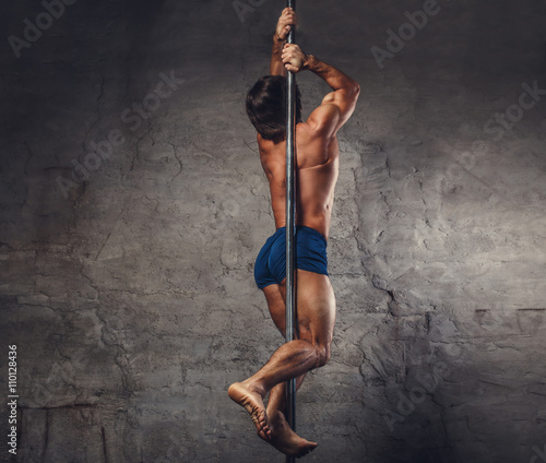 © Fxquadro, Naklejka premium Shirtless man pole dancing.
