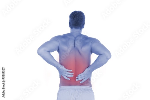 Fototapeta premium Shirtless man suffering from lower back pain