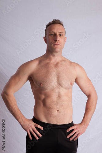 © Allen Penton, Fototapeta premium Shirtless man with his hands on his hips