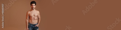 © Drobot Dean, Fototapeta premium Shirtless masculine man posing and looking at camera