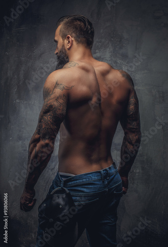 © Fxquadro, Fototapeta premium Shirtless muscular guy from back.