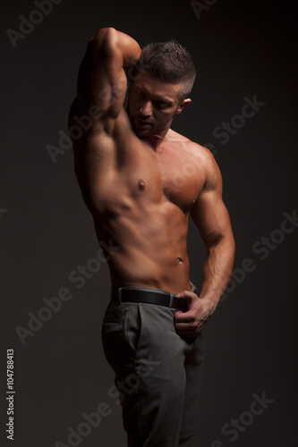 Fototapeta premium shirtless muscular man in pants posing in studio