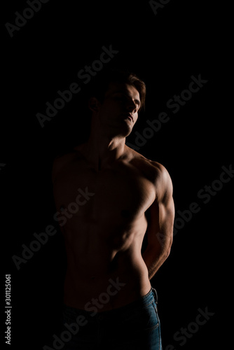 Fototapeta premium shirtless sensual man posing isolated on black