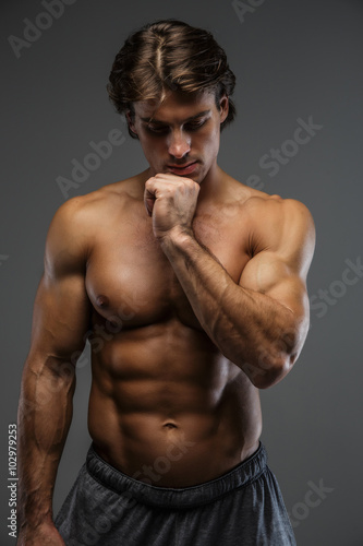 © Fxquadro, Fototapeta premium Shirtless toughtful man.