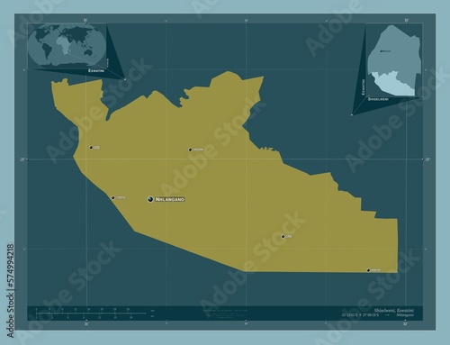 Obraz premium Shiselweni, Eswatini. Solid. Labelled points of cities