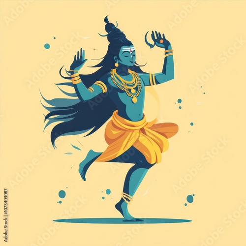 Fototapeta premium Shiva dance, symbolizing cosmic cycle, flat design illustration