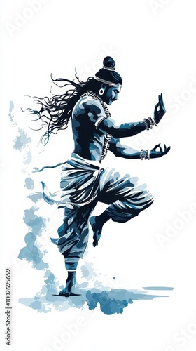 © THINNAKORN, Obraz premium Shiva performing Bhujapidasana arm pressure pose, balancing his body with divine strength, symbolizing mastery over physical limitations, Shiva, yoga, strength