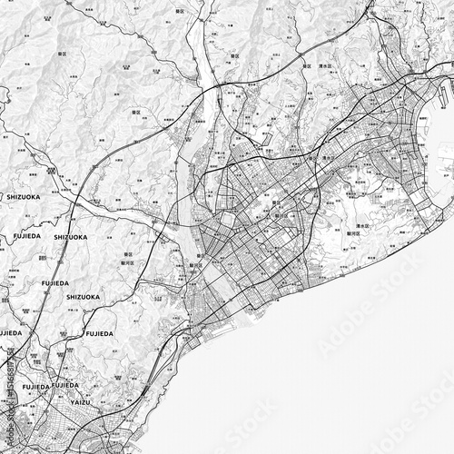 © Knut Hebstreit, Naklejka premium Shizuoka Area Map with Labels and Neighborhoods - One color, minimalistic design