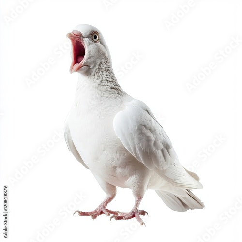 Naklejka premium Shocked dove with open mouth on a white background. Generated AI