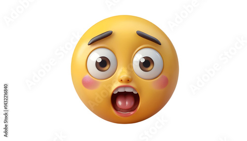 © phj.domingos, Fototapeta premium Shocked emoji face expression yellow surprised reaction digital art render on transparent background