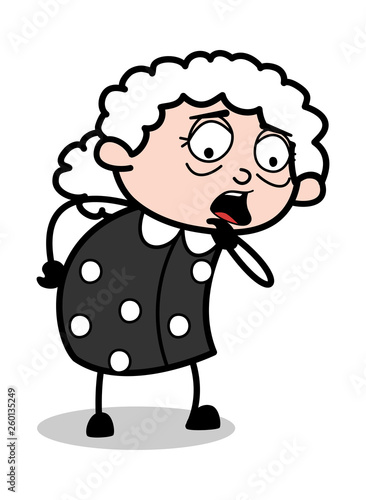 Fototapeta premium Shocked Expression - Old Cartoon Granny Vector Illustration