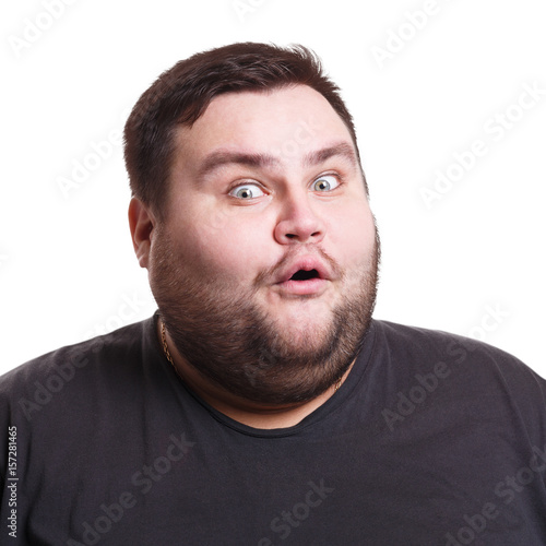 © Prostock-studio, Obraz premium Shocking news. Wonder man expressing amaze on face