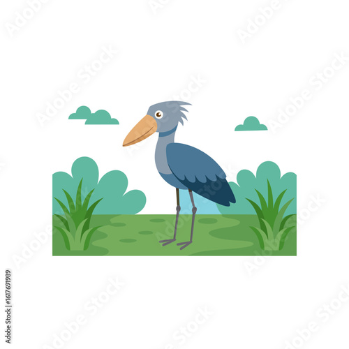 © Dina, Fototapeta premium shoebill stork staring motionless in swamp