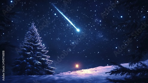 © Olesya, Naklejka premium Shooting star and night sky at Christmas