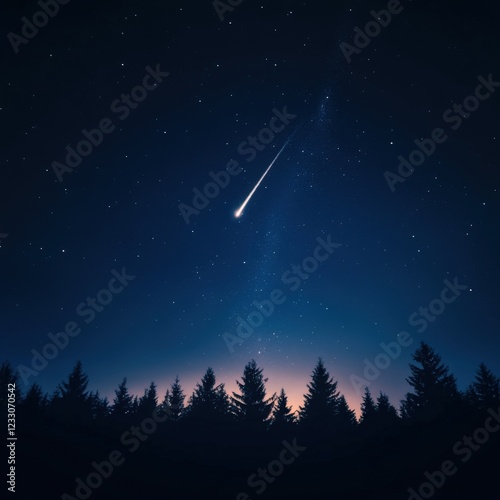 Fototapeta premium shooting star streaks across a dark night sky over a silhouetted forest