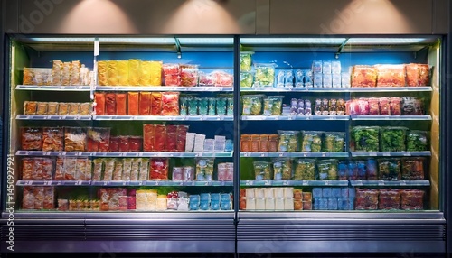 Fototapeta premium shop fridges refrigeration showcase with colorful product packs