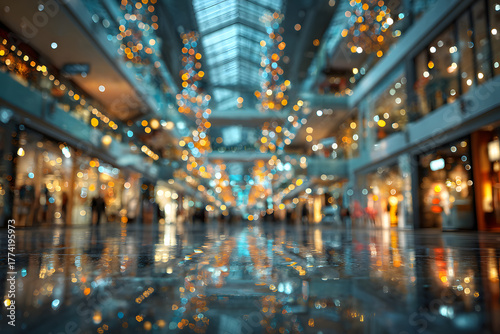 © Daniel, Fototapeta premium Shopping mall blur background with holiday lights