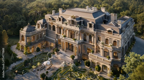 © ikram, Obraz premium Shopping Mall Building Exterior view at night. 3d render, 3d building, home exterior, mosque, shool, image AI, footbol stadion.