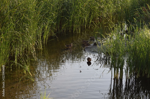 © Наталья Сергеева, Fototapeta premium Shore. Reed. Duck