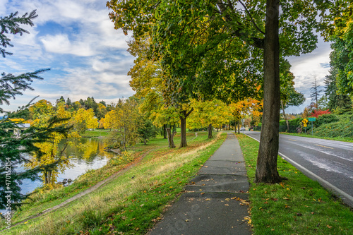 Obraz premium Shoreline Fall Trees Row 6