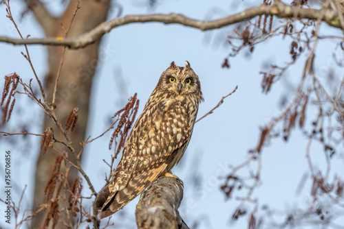 Fototapeta premium Short-eared Owl (Asio flameus) perched on a branch