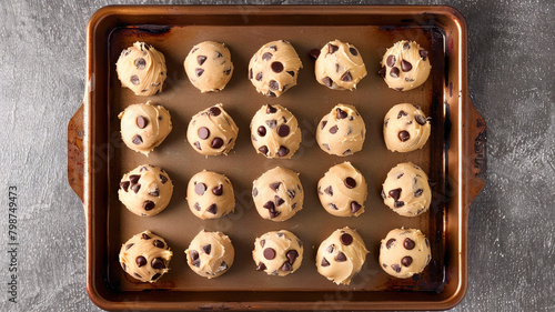 © yanadjan, Obraz premium Shortbread cookies with chocolate drops. Selective focus.