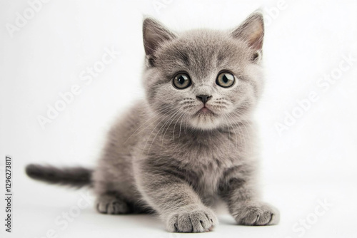 © plysuikvv, Obraz premium Shorthair kitten exploring a bright white background. Generative AI
