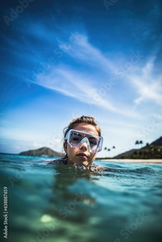 © OMD, Naklejka premium shot of a young woman going snorkeling in the ocean
