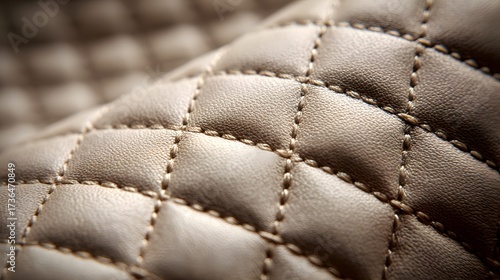 Obraz premium shot presents a softly lit, beige-toned leather surface, exhibiting a quilted...