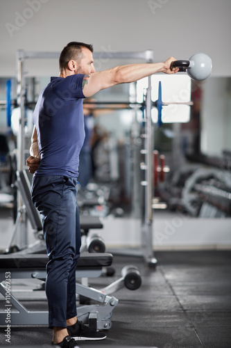 © Xalanx, Naklejka premium Shoulder workout with kettle