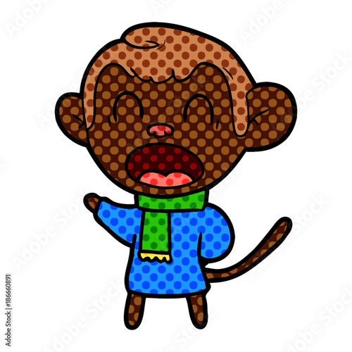 Obraz premium shouting cartoon monkey wearing scarf