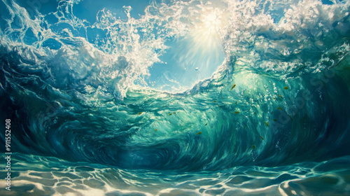 Fototapeta premium Show an underwater view of waves, with light filtering through the water,...