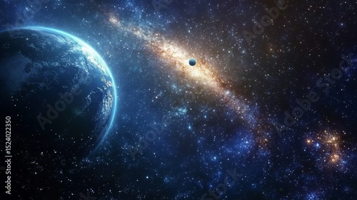 © jie, Obraz premium show how big the universe it, we can see tiny planet earth in the distance