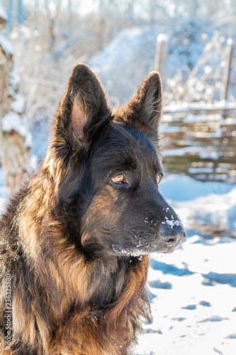 © gans340, Naklejka premium Show line german shepherd portrait in snow