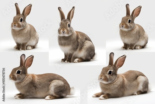 © Michael, Fototapeta premium Showcase of Fluffy Lop-Eared Rabbits Sitting, Hopping, and Lying Isolated on White Background