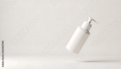 Fototapeta premium Showcasing minimalist floating cosmetic bottle in studio space