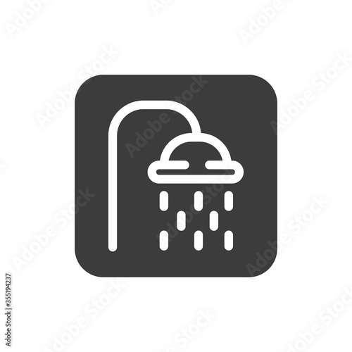© Backwoodsdesign, Obraz premium Shower black glyph icon. Public navigation. Pictogram for web page, mobile app, promo. UI UX GUI design element. Editable stroke.