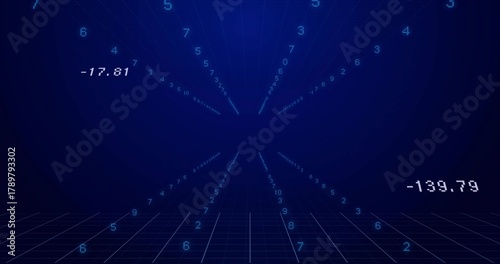 Fototapeta premium Showing central numeric tunnel converging toward center in 3D grid plane with...