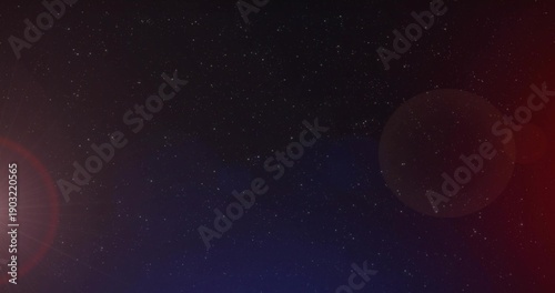 Fototapeta premium Showing dense starfield at night with left red-ring flare, right faint red flare, blue lower tint