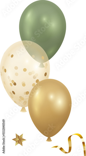 Fototapeta premium showing festive balloon cluster in flat style with confetti and ribbon on transparent background